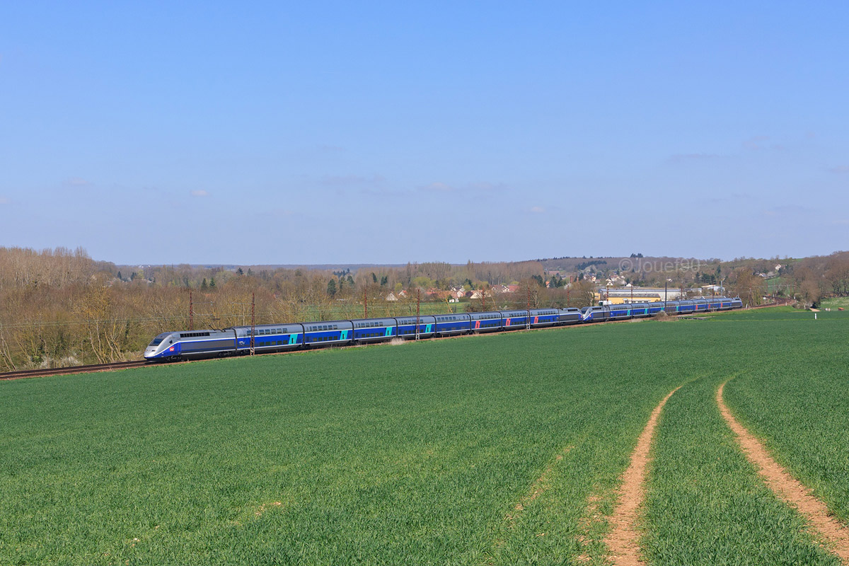 Détails photographie Titre : UM de Duplex à Saint-Piat Description : Circulant sous un grand soleil, cette UM de Duplex est vue du côté de Saint-Piat alors qu'elle assure un TGV Marseille - Rennes/Nantes détourné. Date de la prise de vue : samedi 20 avril 2013 - 14h08 (heure locale) Date de mise en ligne : mercredi 25 septembre 2013 - 19h03 Numéro de la photo : 5803 Dimensions de la photo : 1200x800 Taille du fichier : 308.05 Ko Cette photo appartient aux types de photo suivants : Trains en ligne Cette photo présente les éléments visuels suivants : Conditions météo - Jour Éléments ferroviaires - Caténaire 1.5 kV Paysage - Montagne/Colline/Falaise Paysage - Village/Maisons Notes du photographe : Les détournements font suite à des travaux du côté de Pont-de-Rungis. Les trains empruntent alors le trajet Valenton - Longjumeau - Massy - Versailles - Chartres - Le Mans. |