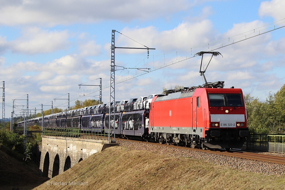 Détails photographie Titre : Traxx Rouge sur un porte-autos Description : E 186 323-2 assure un porte-autos vers le sud. Elle est vue au saut de mouton de Villeneuve-la-Guyard entre Montereau et Sens. Date de la prise de vue : dimanche 13 octobre 2013 - 15h49 (heure locale) Date de mise en ligne : dimanche 27 octobre 2013 - 23h18 Numéro de la photo : 5887 Dimensions de la photo : 1200x800 Taille du fichier : 622.58 Ko Cette photo appartient aux types de photo suivants : Trains en ligne Cette photo présente les éléments visuels suivants : Conditions météo - Ciel très nuageux Conditions météo - Jour Éléments ferroviaires - Caténaire 1.5 kV Paysage - Pont/Viaduc |