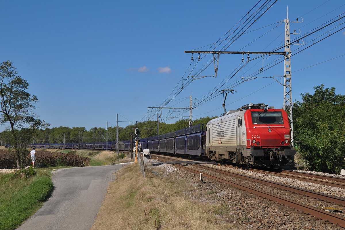 Détails photographie Titre : E 37515 sur train GEFCO St-Jory - Gevrey Description : Retour à vide du train GEFCO 60525 St-Jory - Gevrey. Ce train qui exécute 2 rotations par semaine est confié aux locomotives E 37500 d'Europorte. Il est photographié à son passage à Villefranche-de-Lauragais (Haute-Garonne). Date de la prise de vue : lundi 07 octobre 2013 - 14h52 (heure locale) Date de mise en ligne : vendredi 08 novembre 2013 - 14h55 Numéro de la photo : 5916 Dimensions de la photo : 1200x800 Taille du fichier : 346.05 Ko Cette photo appartient aux types de photo suivants : Trains en ligne Cette photo présente les éléments visuels suivants : Conditions météo - Jour Éléments ferroviaires - Caténaire 1.5 kV Éléments ferroviaires - Passage à niveau Éléments ferroviaires - Signalisation lumineuse |