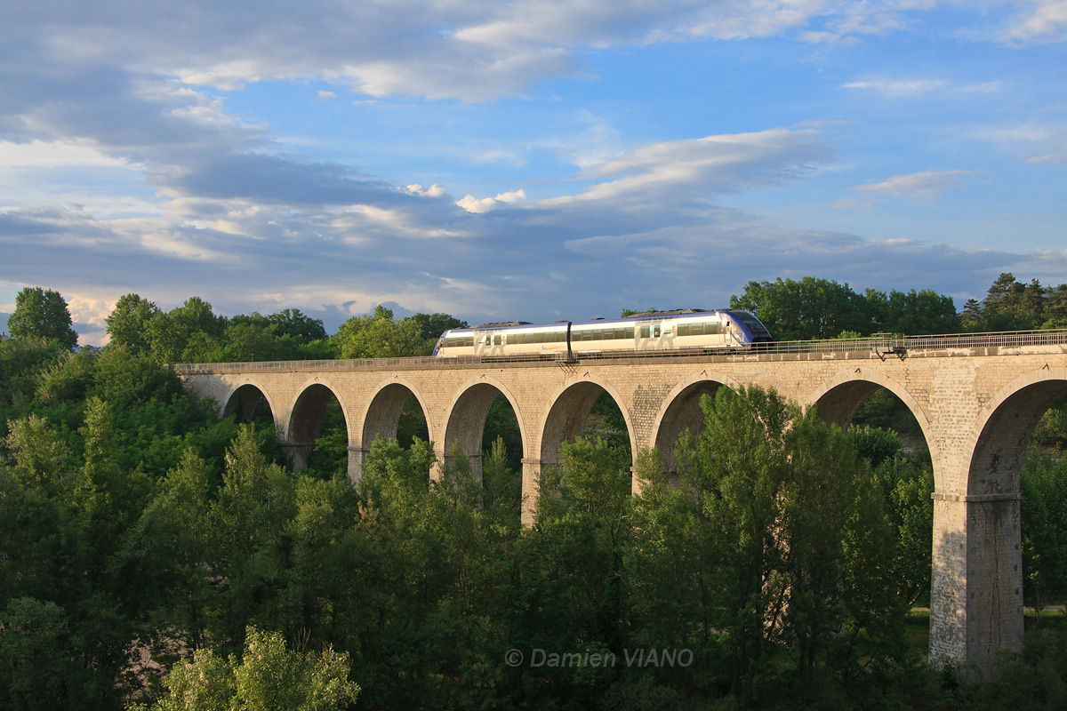 Détails photographie Titre : XTER enjambant le Buëch Description : Cet XTER assurant le TER 17408 Marseille - Gap est vu sur le viaduc en sortie de Sisteron. Date de la prise de vue : jeudi 12 mai 2011 - 19h47 (heure locale) Date de mise en ligne : samedi 23 novembre 2013 - 15h54 Numéro de la photo : 5949 Dimensions de la photo : 1200x800 Taille du fichier : 411.44 Ko Cette photo appartient aux types de photo suivants : Trains en ligne Cette photo présente les éléments visuels suivants : Conditions météo - Ciel très nuageux Conditions météo - Jour Paysage - Pont/Viaduc Notes du photographe : Merci à Marcel R. pour le transport. |