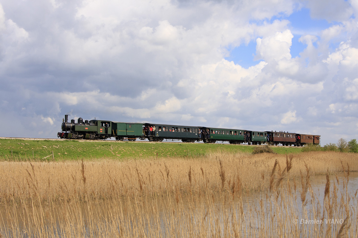 Détails photographie Titre : 020-020 et rame Somme verte dans les marais Description : La 020-020 T n°101, mise en service en 1906 sur le réseau PO-Corrèze et officiant actuellement sur les Voies Ferrées du Velay, parade dans les marais de la Baie de Somme, à l'occasion du Festival Vapeur 2013 organisé par le CFBS. Elle est ici à la traction d'un train Le Crotoy - Cayeux, depuis Noyelles-sur-Mer, où le rebroussement est obligatoire. Date de la prise de vue : samedi 27 avril 2013 - 11h48 (heure locale) Date de mise en ligne : mardi 03 décembre 2013 - 11h57 Numéro de la photo : 5975 Dimensions de la photo : 1200x800 Taille du fichier : 343.53 Ko Cette photo appartient aux types de photo suivants : Trains en ligne Cette photo présente les éléments visuels suivants : Conditions météo - Ciel très nuageux Conditions météo - Jour Éléments ferroviaires - Matériel plaqué (en relief) Paysage - Cours d'eau/Canal Notes du photographe : Un grand merci à Jean-Claude L. pour le transport ! |