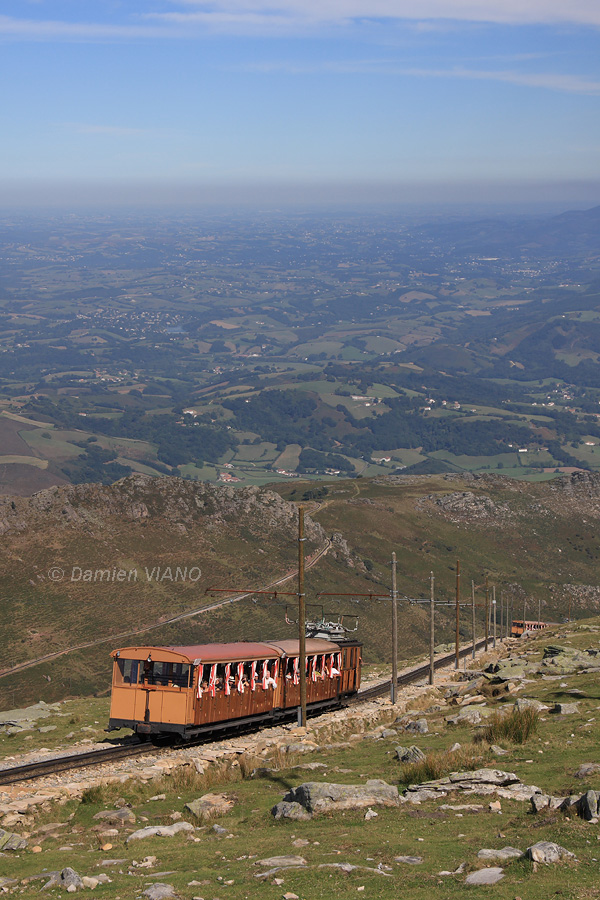 Détails photographie Titre : Retour dans la vallée... Description : Laissant derrière eux le sommet de la Rhune à 905 m d'altitude, les deux convois, distants de quelques centaines de mètres, entament leur descente vers le Col St-Ignace, à la vitesse de 8 km/h. Date de la prise de vue : mercredi 15 septembre 2010 - 16h03 (heure locale) Date de mise en ligne : jeudi 12 décembre 2013 - 11h28 Numéro de la photo : 6001 Dimensions de la photo : 600x900 Taille du fichier : 267.39 Ko Cette photo appartient aux types de photo suivants : Trains en ligne Cette photo présente les éléments visuels suivants : Conditions météo - Jour Paysage - Montagne/Colline/Falaise Paysage - Village/Maisons |