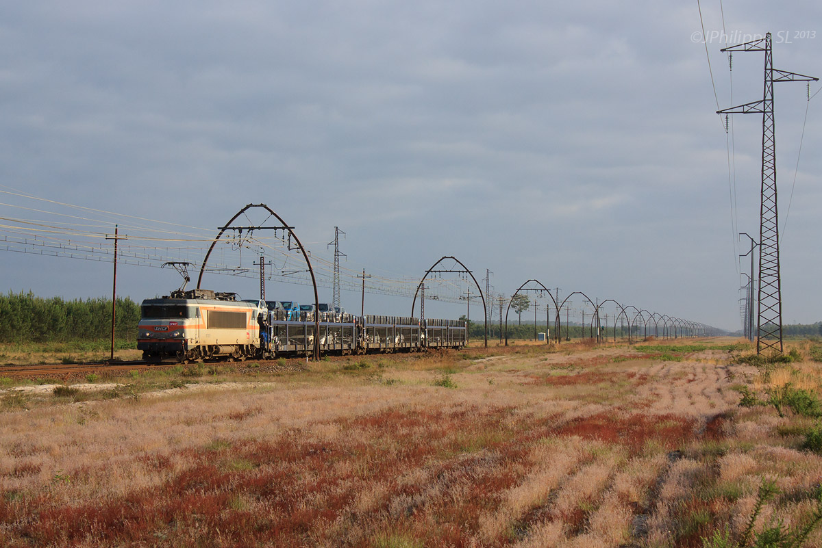 Détails photographie Titre : Auto-train dans les Landes Description : Assuré par la BB 7303, l'Auto-train pour Biarritz est vu entre Ychoux et Labouheyre. Date de la prise de vue : mardi 25 juin 2013 - 08h02 (heure locale) Date de mise en ligne : mardi 17 décembre 2013 - 10h55 Numéro de la photo : 6016 Dimensions de la photo : 1200x801 Taille du fichier : 300.7 Ko Cette photo appartient aux types de photo suivants : Trains en ligne Cette photo présente les éléments visuels suivants : Conditions météo - Ciel très nuageux Conditions météo - Contre-jour Conditions météo - Jour Éléments ferroviaires - Caténaire 1.5 kV Éléments ferroviaires - Ogives |