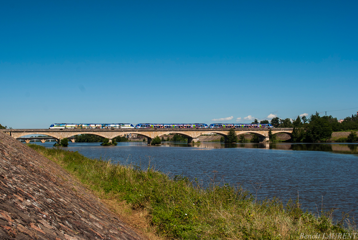 Détails photographie Titre : Triplette d'AGC traversant la Loire Description : Triplette d'AGC entièrement pelliculée sur la relation Clermont-Ferrand - Lyon traversant le pont sur la Loire long de 214m. Date de la prise de vue : lundi 12 août 2013 - 15h32 (heure locale) Date de mise en ligne : lundi 06 janvier 2014 - 19h45 Numéro de la photo : 6061 Dimensions de la photo : 1200x803 Taille du fichier : 664.08 Ko Cette photo appartient aux types de photo suivants : Trains en ligne Cette photo présente les éléments visuels suivants : Conditions météo - Jour Paysage - Cours d'eau/Canal Paysage - Pont/Viaduc |
