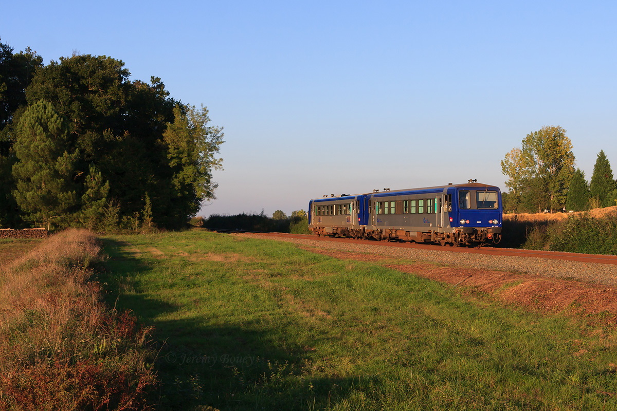 Détails photographie Titre : Doublette d'X 2200 sur Saintes - Bordeaux Description : Jolie lumière de soirée pour cette UM d'X 2200 Poitou-Charentes (X 2240 et X 2220), assurant le TER 864207 Saintes - Bordeaux de soirée. Elle est vue entre Saint-Mariens et Saint-André-de-Cubzac, longeant la future LGV SEA. Date de la prise de vue : lundi 07 octobre 2013 - 18h41 (heure locale) Date de mise en ligne : lundi 06 janvier 2014 - 19h53 Numéro de la photo : 6065 Dimensions de la photo : 1200x800 Taille du fichier : 495.41 Ko Cette photo appartient aux types de photo suivants : Trains en ligne Cette photo présente les éléments visuels suivants : Conditions météo - Crépuscule/Aube Conditions météo - Jour |