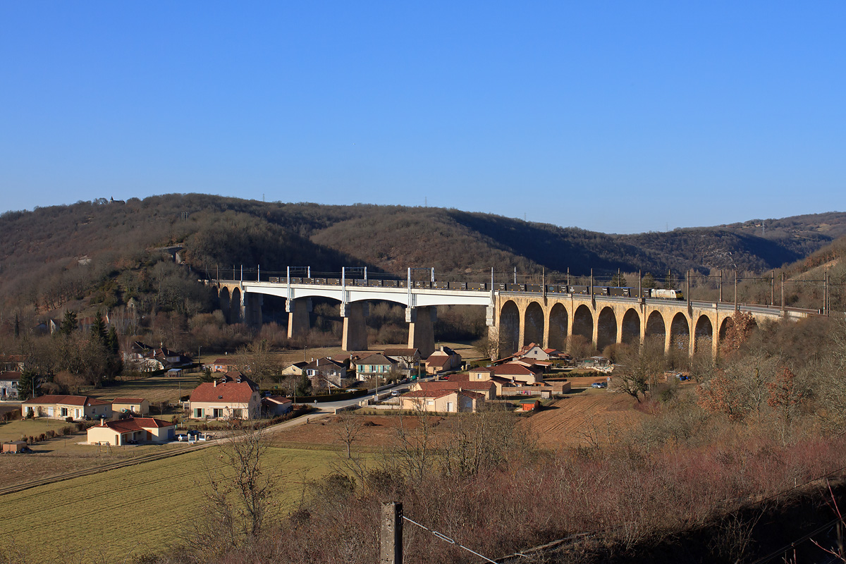 Détails photographie Titre : Transfesa Ford à Souillac Description : Remorqué par une BR 186 ECR, le train "Ford" reliant Dagenham en Angleterre à Silla en Espagne, passe à Souillac, sur un des 3 grands viaducs. Habitué à de longues rames (une quarantaine de wagons), le train est plutôt "court" ce jour là , avec seulement 23 wagons. Date de la prise de vue : jeudi 01 mars 2012 - 16h42 (heure locale) Date de mise en ligne : vendredi 10 janvier 2014 - 12h41 Numéro de la photo : 6073 Dimensions de la photo : 1200x800 Taille du fichier : 425.82 Ko Cette photo appartient aux types de photo suivants : Trains en ligne Cette photo présente les éléments visuels suivants : Conditions météo - Jour Éléments ferroviaires - Caténaire 1.5 kV Paysage - Montagne/Colline/Falaise Paysage - Pont/Viaduc Paysage - Village/Maisons Notes du photographe : Merci à Elien pour le transport ! |