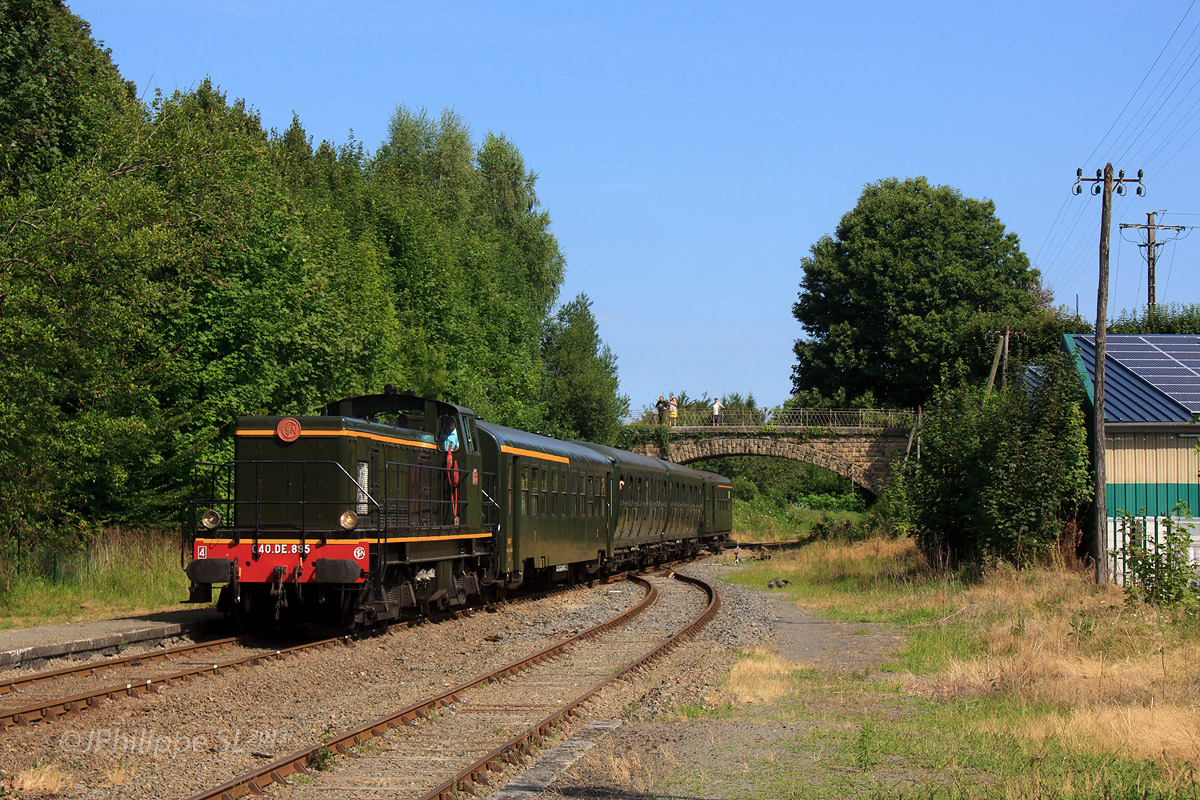 Détails photographie Titre : Oh Pompadour ! Description : Cette année 2013 aura été pauvre en vapeur dans le Sud-Ouest, au CFTLP, la 141 TD 740 étant en maintenance. La BB 63895, renumérotée 040 DE 895 et en livrée d'origine, assurait l'intérim. La voici arrivant en gare de la cité du cheval, Pompadour, au cours d'un voyage Limoges - Brive. Si tout se passe bien, le CFTLP aura 2 vapeurs en 2014 : la 140 C 314 et la 141 TD 740. Date de la prise de vue : dimanche 04 août 2013 - 11h06 (heure locale) Date de mise en ligne : lundi 13 janvier 2014 - 16h33 Numéro de la photo : 6079 Dimensions de la photo : 1200x800 Taille du fichier : 498.31 Ko Cette photo appartient aux types de photo suivants : Trains en gare Cette photo présente les éléments visuels suivants : Conditions météo - Jour Éléments ferroviaires - Matériel plaqué (en relief) Éléments ferroviaires - Poteaux télégraphiques Éléments ferroviaires - Rail Double-Champignon Paysage - Pont/Viaduc |