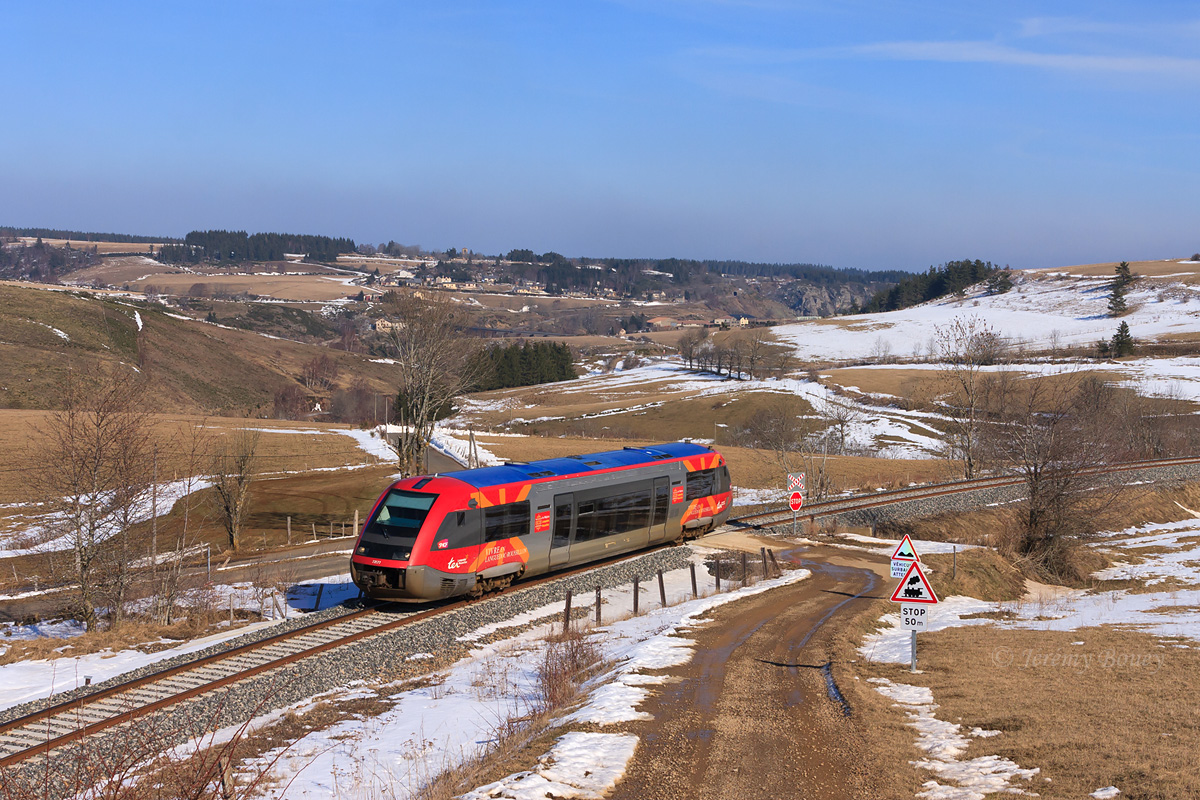 Détails photographie Titre : ATER Languedoc sur le Translozérien Description : Reliant les célèbres lignes des Causses et des Cévennes, cette magnifique ligne traverse les hauts plateaux de la Lozère. Brisant le silence de ces paysages paisibles dans les environs de Chasseradès, l'X 73577 Languedoc Roussillon assure le TER 877736 Nîmes - Mende... Date de la prise de vue : mercredi 27 février 2013 - 15h16 (heure locale) Date de mise en ligne : lundi 13 janvier 2014 - 16h50 Numéro de la photo : 6081 Dimensions de la photo : 1200x800 Taille du fichier : 513.94 Ko Cette photo appartient aux types de photo suivants : Trains en ligne Cette photo présente les éléments visuels suivants : Conditions météo - Jour Conditions météo - Neige Éléments ferroviaires - Passage à niveau Paysage - Montagne/Colline/Falaise Paysage - Village/Maisons |