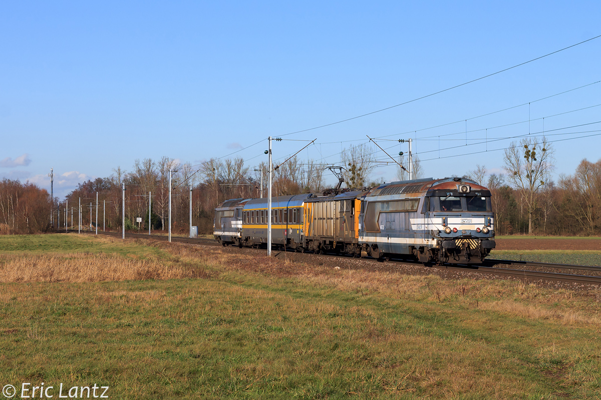 Détails photographie Titre : Vulcain et Lucie en terres alsaciennes ! Description : Passage avec deux heures de retard d'un train Infra de mesures constitué de Vulcain (Véhicule Universel du Laboratoire Capable d'Absorber une Intensité Nominale) et Lucie (Laboratoire Universel de Contrôle des Installations Électriques). Encadrés par deux 67200, ces voitures forment un couple inséparable chargé de vérifier la conformité des installations fixes de retour de courant de traction. Date de la prise de vue : mardi 28 janvier 2014 - 14h20 (heure locale) Date de mise en ligne : mercredi 12 février 2014 - 21h35 Numéro de la photo : 6127 Dimensions de la photo : 1200x800 Taille du fichier : 668.77 Ko Cette photo appartient aux types de photo suivants : Trains en ligne Cette photo présente les éléments visuels suivants : Conditions météo - Jour Éléments ferroviaires - Caténaire 25 kV Éléments ferroviaires - Pancarte/Tableau |