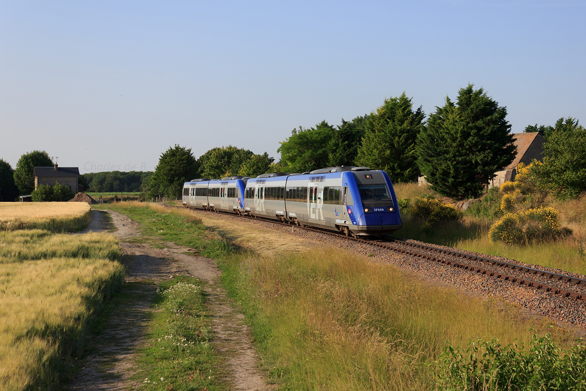 Détails photographie Titre : UM de X 72500 pour Tours Description : Parfaitement à l'heure, le TER 860665 Châteaudun - Tours passe un des nombreux PN non gardés de la ligne Paris - Tours via Vendôme. Des travaux de voie ont eu lieu sur cet axe en 2011 et 2013 mais la portion illustrée sur la photo reste équipée en rails "double champignon" (DC). Date de la prise de vue : dimanche 14 juillet 2013 - 19h28 (heure locale) Date de mise en ligne : jeudi 27 février 2014 - 17h31 Numéro de la photo : 6156 Dimensions de la photo : 1200x800 Taille du fichier : 546.83 Ko Cette photo appartient aux types de photo suivants : Trains en ligne Cette photo présente les éléments visuels suivants : Conditions météo - Jour Éléments ferroviaires - Pancarte kilométrique/hectométrique/PN Éléments ferroviaires - Rail Double-Champignon Notes du photographe : Coin accessible (en voiture cependant) également de la gare de Vendôme Villiers sur Loir (gare TGV). |