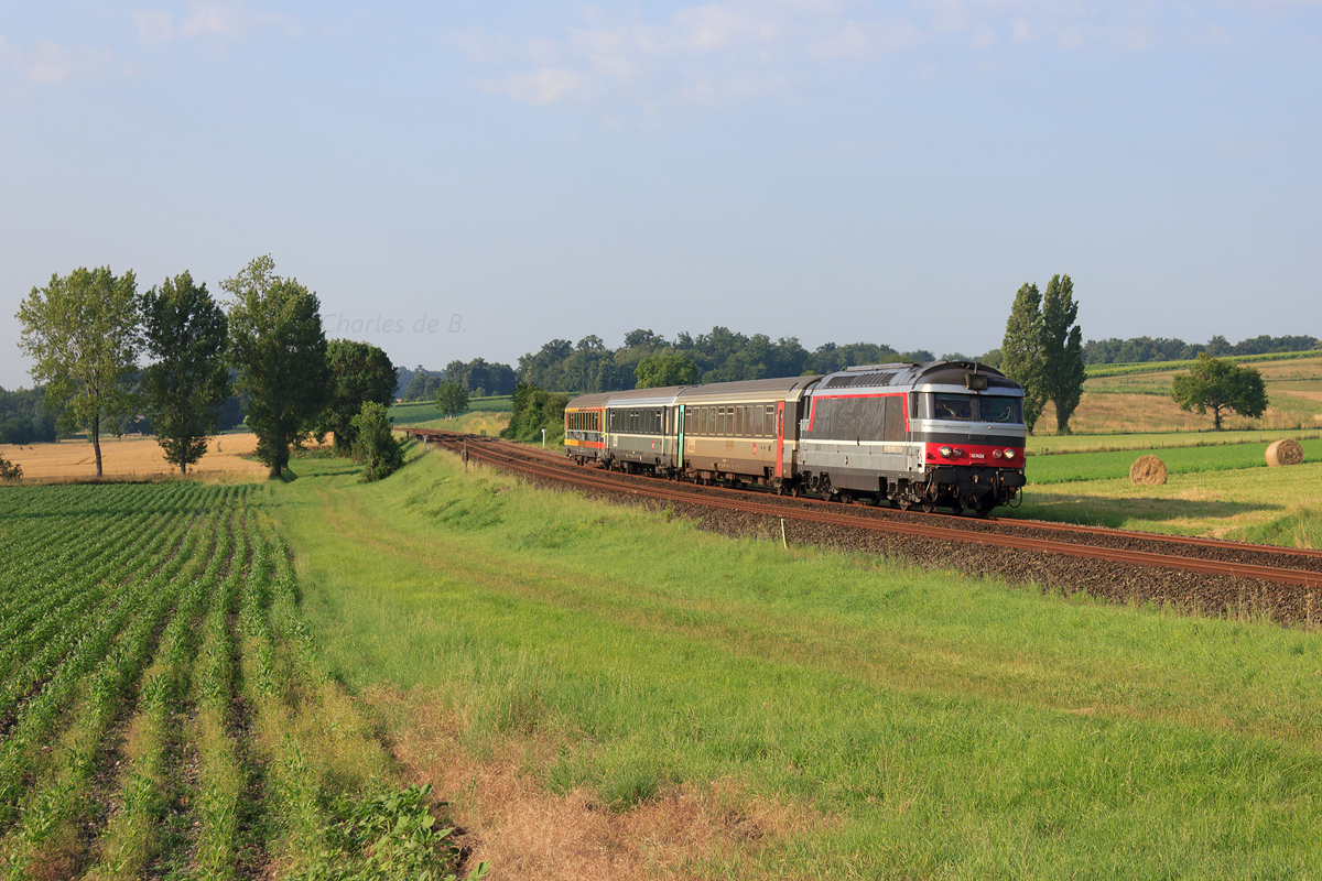 Détails photographie Titre : BB 67424 sur le W Bordeaux - Saintes Description : La BB 67424 achemine une courte rame en W de Bordeaux à Saintes. Le tout est surpris à hauteur de Chartuzac, avec près de 30 minutes de retard sur son horaire de passage théorique. Date de la prise de vue : mardi 09 juillet 2013 - 08h48 (heure locale) Date de mise en ligne : vendredi 07 mars 2014 - 22h37 Numéro de la photo : 6173 Dimensions de la photo : 1200x800 Taille du fichier : 648.7 Ko Cette photo appartient aux types de photo suivants : Trains en ligne Cette photo présente les éléments visuels suivants : Conditions météo - Jour Éléments ferroviaires - Pancarte kilométrique/hectométrique/PN Paysage - Bottes de paille/foin |