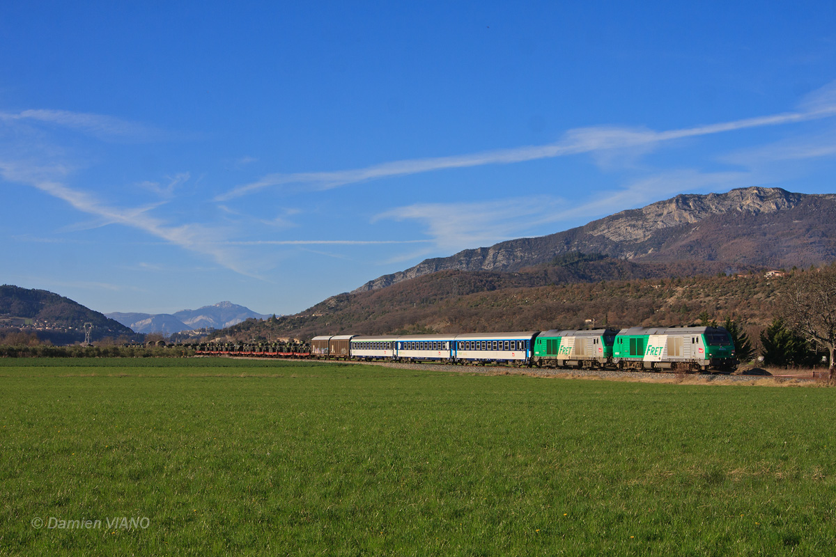 Détails photographie Titre : Train militaire Veynes - Châlons-en-Champagne Description : Descendant de Veynes avec une bonne heure de retard, le train militaire n° 445427 à destination de Châlons-en-Champagne (via Avignon) est vu dans un paysage plus campagnard, au sud de Sisteron. Date de la prise de vue : lundi 17 mars 2014 - 16h55 (heure locale) Date de mise en ligne : vendredi 18 avril 2014 - 17h10 Numéro de la photo : 6246 Dimensions de la photo : 1200x800 Taille du fichier : 398.52 Ko Cette photo appartient aux types de photo suivants : Trains en ligne Cette photo présente les éléments visuels suivants : Conditions météo - Jour Paysage - Montagne/Colline/Falaise Notes du photographe : Merci à Marcel R. pour le transport. |