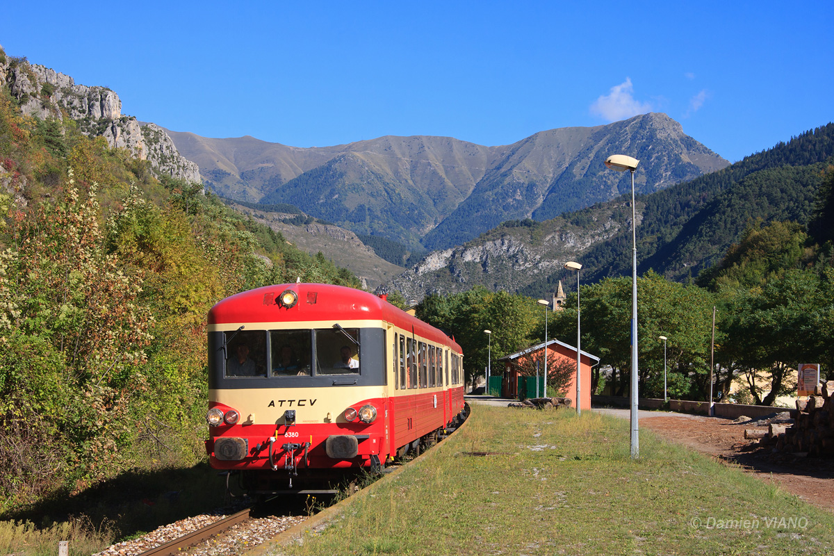 Détails photographie Titre : EAD en gare de La Brigue Description : L'X 4567 de l'ATTCV, assurant en ce beau jour d'automne 2013 un "Train des Merveilles Rétro" entre Toulon et Tende, est vu au début de sa marche retour, traversant la petite gare de La Brigue, commune restée aux mains de l'Italie jusqu'en 1947. Date de la prise de vue : samedi 12 octobre 2013 - 15h07 (heure locale) Date de mise en ligne : samedi 26 avril 2014 - 23h33 Numéro de la photo : 6271 Dimensions de la photo : 1200x800 Taille du fichier : 599.34 Ko Cette photo appartient aux types de photo suivants : Trains en gare Cette photo présente les éléments visuels suivants : Conditions météo - Jour Éléments ferroviaires - Bâtiment voyageur (BV) Paysage - Montagne/Colline/Falaise Notes du photographe : Ce train spécial a été organisé pour fêter les 100 ans de l'arrivée du chemin de fer à Tende. |