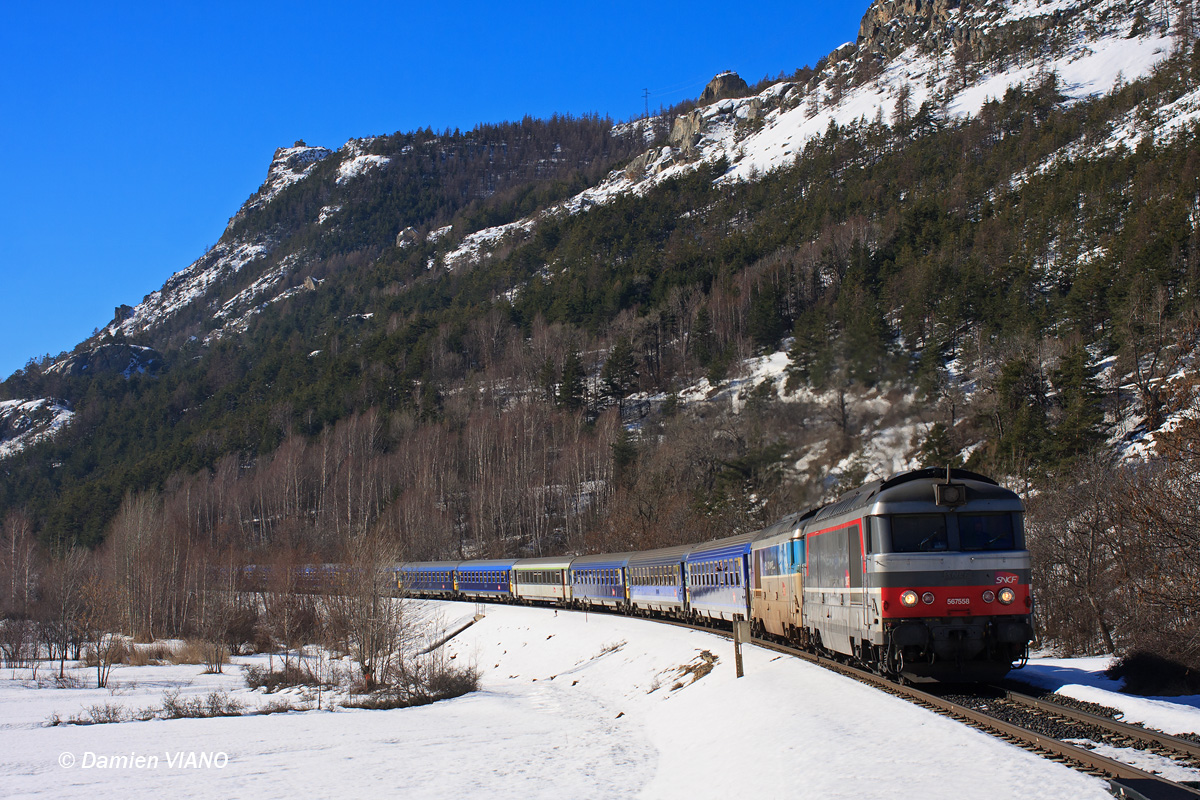 Détails photographie Titre : Un "train bleu" dans les Alpes... Description : Bien que la rame ressemble à s'y méprendre au traditionnel "Train Bleu" reliant Paris à la Côte d'Azur, nous sommes bel et bien dans les Alpes, plus précisément à la sortie des gorges de la Durance, avec l'Intercités de nuit 5833, train supplémentaire mis en marche pour l'arrivée massive de skieurs, tracté depuis Valence par les BB 67558 et 67621. Date de la prise de vue : samedi 22 février 2014 - 10h13 (heure locale) Date de mise en ligne : lundi 28 avril 2014 - 11h18 Numéro de la photo : 6280 Dimensions de la photo : 1200x800 Taille du fichier : 524.59 Ko Cette photo appartient aux types de photo suivants : Trains en ligne Cette photo présente les éléments visuels suivants : Conditions météo - Jour Conditions météo - Neige Paysage - Montagne/Colline/Falaise |