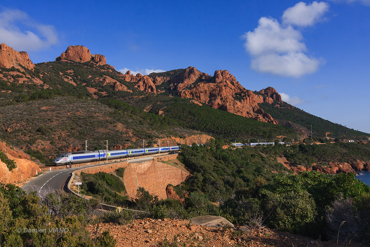 Détails photographie Titre : UM de TGV Réseau dans l'Estérel Description : Les deux rames Réseau Lacroix composant le TGV 9866 à destination de Bruxelles-Midi sont aperçues non loin d'Anthéor, entre mer et montagnes. Date de la prise de vue : jeudi 20 février 2014 - 10h11 (heure locale) Date de mise en ligne : mercredi 21 mai 2014 - 16h11 Numéro de la photo : 6307 Dimensions de la photo : 1200x800 Taille du fichier : 568.37 Ko Cette photo appartient aux types de photo suivants : Trains en ligne Cette photo présente les éléments visuels suivants : Conditions météo - Jour Éléments ferroviaires - Caténaire 25 kV Paysage - Mer/Lac/Étang Paysage - Montagne/Colline/Falaise |