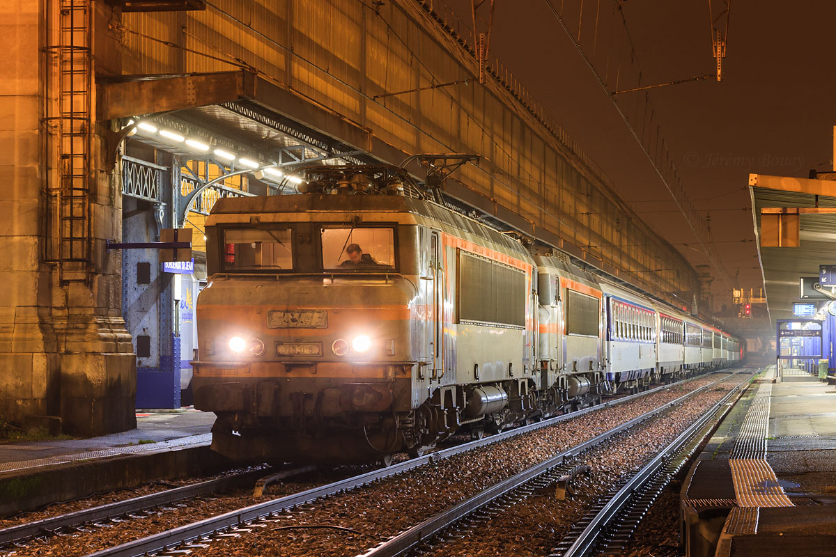 Détails photographie Titre : Autan en emporte les souvenirs... Description : Soirée des adieux en gare Saint-Jean... Avec la suppression de l'Autan (Intercités de Nuit Irún/Hendaye - Nice), c'est aussi la fin des trains de nuit à Bordeaux ! Voici donc l'ultime 4630/31 Hendaye - Nice prêt au départ, avec plus de 30 min de retard, après son tête à queue sur la voie 8 de Bordeaux-St-Jean... Date de la prise de vue : vendredi 13 décembre 2013 - 22h21 (heure locale) Date de mise en ligne : mardi 08 juillet 2014 - 13h35 Numéro de la photo : 6450 Dimensions de la photo : 1200x800 Taille du fichier : 489.87 Ko Cette photo appartient aux types de photo suivants : Trains en gare Cette photo présente les éléments visuels suivants : Conditions météo - Nuit Éléments ferroviaires - Caténaire 1.5 kV Éléments ferroviaires - Marquise/Verrière |