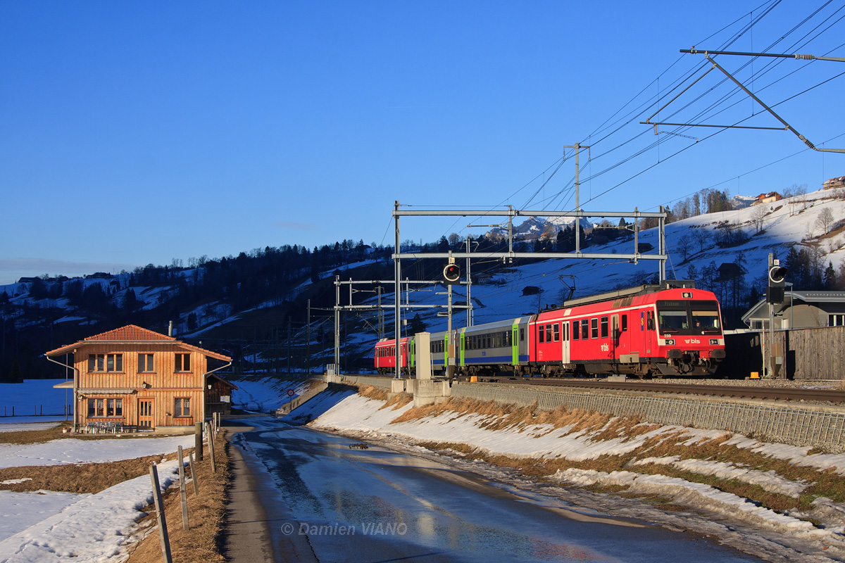Détails photographie Titre : Train régional sur le Lötschberg Description : Le train régional 6173 du BLS, assuré par une automotrice de type RBDe 566 II, attaque la ligne du Lötschberg, sur une mission Spiez - Frutigen, alors que la vallée plonge dans l'ombre... Date de la prise de vue : vendredi 24 février 2012 - 16h48 (heure locale) Date de mise en ligne : jeudi 10 juillet 2014 - 16h09 Numéro de la photo : 6464 Dimensions de la photo : 1200x800 Taille du fichier : 437.5 Ko Cette photo appartient aux types de photo suivants : Trains en ligne Cette photo présente les éléments visuels suivants : Conditions météo - Jour Conditions météo - Neige Éléments ferroviaires - Signalisation lumineuse Paysage - Montagne/Colline/Falaise Paysage - Village/Maisons Notes du photographe : Un grand merci à Luca V. pour le transport. |