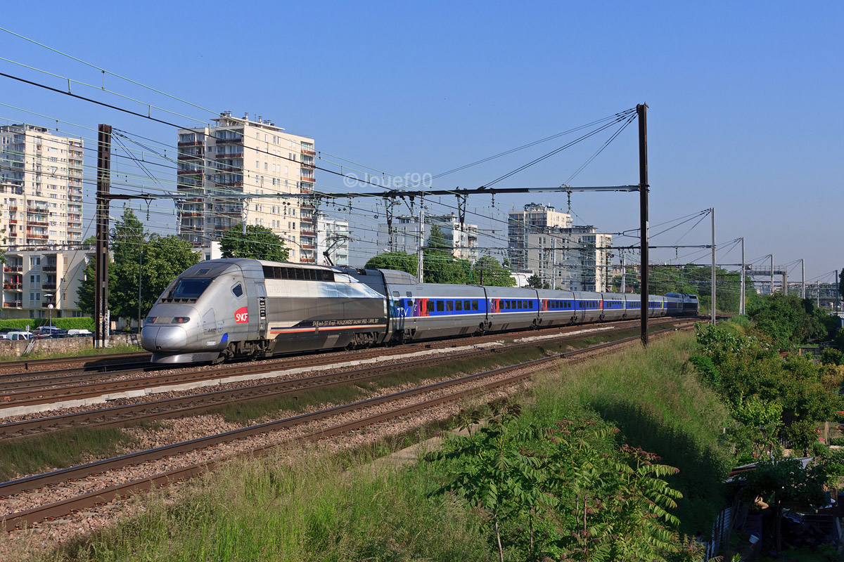 Détails photographie Titre : Rame POS 4402 au Vert-de-Maisons Description : La rame POS 4402, dont les motrices sont celles ayant battu le record du monde de vitesse sur rail, est vue remontant en direction de Paris. Date de la prise de vue : jeudi 06 juin 2013 - 09h33 (heure locale) Date de mise en ligne : vendredi 11 juillet 2014 - 22h42 Numéro de la photo : 6466 Dimensions de la photo : 1200x800 Taille du fichier : 420.68 Ko Cette photo appartient aux types de photo suivants : Trains en ligne Cette photo présente les éléments visuels suivants : Conditions météo - Jour Éléments ferroviaires - Caténaire 1.5 kV |