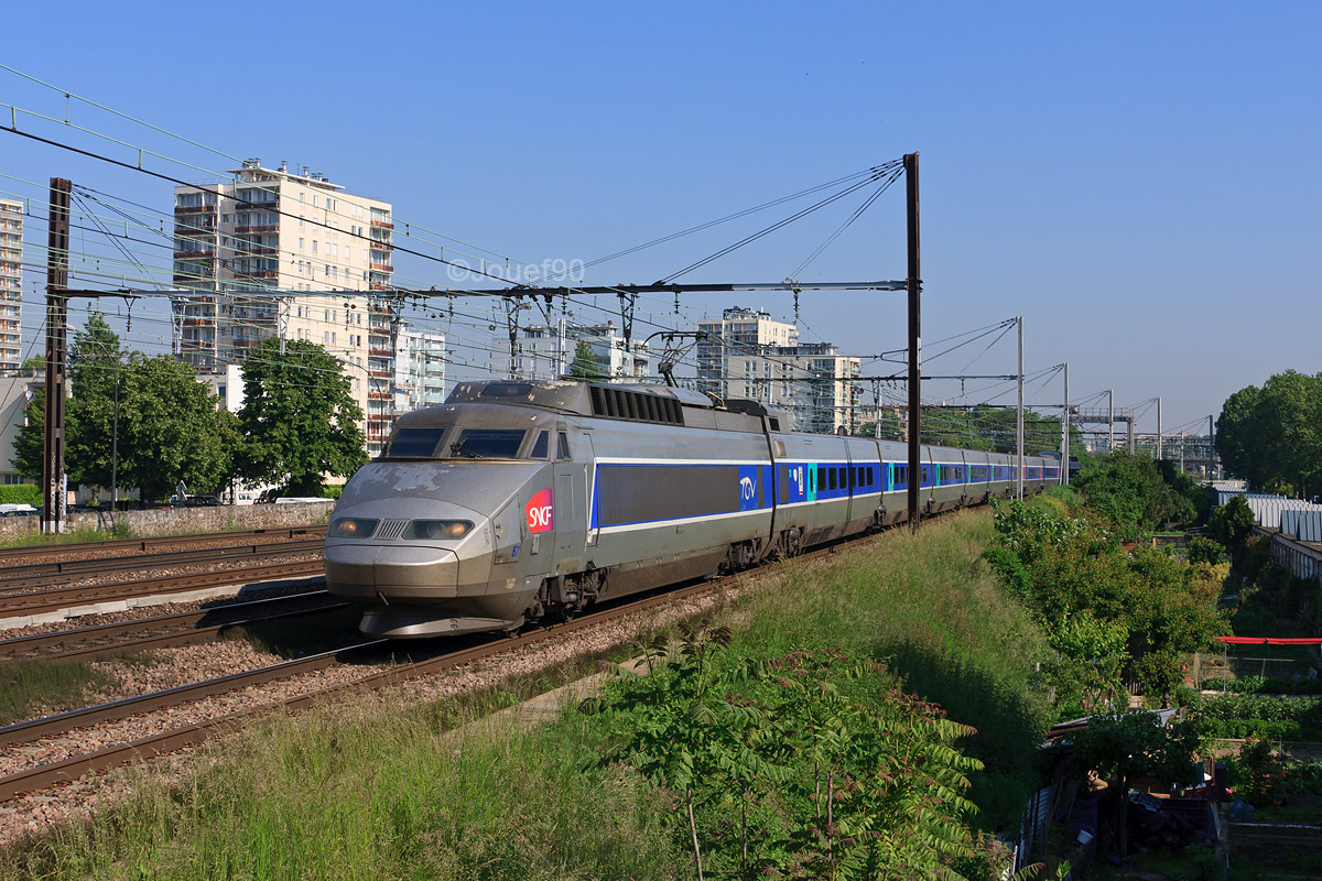 Détails photographie Titre : TGV SE pour Grenoble Description : La rame TGV SE n°67 est vue s'apprêtant à passer à toute vitesse en gare du Vert-de-Maisons. Dans quelques minutes, celle-ci fera son entrée sur la LGV. Date de la prise de vue : jeudi 06 juin 2013 - 09h44 (heure locale) Date de mise en ligne : mercredi 16 juillet 2014 - 12h11 Numéro de la photo : 6487 Dimensions de la photo : 1200x800 Taille du fichier : 406.4 Ko Cette photo appartient aux types de photo suivants : Trains en ligne Cette photo présente les éléments visuels suivants : Conditions météo - Jour Éléments ferroviaires - Caténaire 1.5 kV Paysage - Village/Maisons |