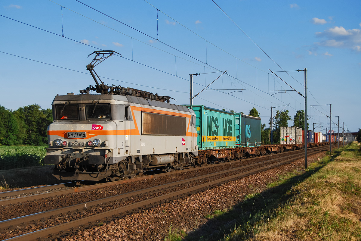 Détails photographie Titre : Naviland pour Vénissieux en fin de journée Description : Depuis que les BB 15000 ont quitté l'Alsace au printemps 2013, les trains Naviland Strasbourg - Vénissieux sont les derniers trains où l'on a la possibilité de voir une locomotive de la famille des nez cassés. Sous une belle lumière en fin de journée, la BB 22382 vient de quitter l'agglomération strasbourgeoise avec le Naviland du mercredi soir. Date de la prise de vue : mercredi 25 juin 2014 - 19h49 (heure locale) Date de mise en ligne : samedi 23 août 2014 - 23h13 Numéro de la photo : 6630 Dimensions de la photo : 1200x800 Taille du fichier : 470.89 Ko Cette photo appartient aux types de photo suivants : Trains en ligne Cette photo présente les éléments visuels suivants : Conditions météo - Jour Éléments ferroviaires - Caténaire 25 kV |