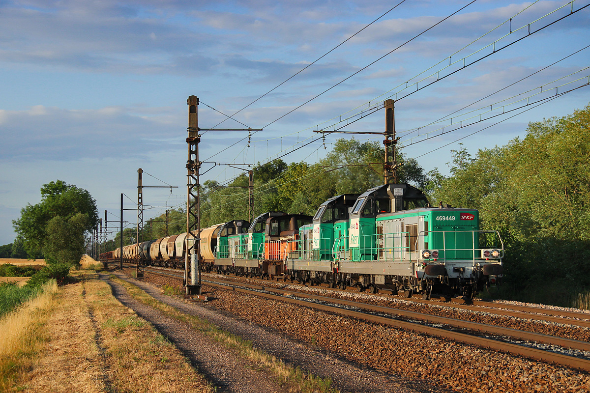 Détails photographie Titre : Fret bariolé de couleurs vers Meursault Description : La 69449 est aperçue vers Meursault en charge d'un long train de Fret à destination de Nevers, le quinté gagnant en tête est donc composé des BB 69449, 69489, Y8110, BB 69480 & 69495. Date de la prise de vue : lundi 30 juin 2014 - 20h32 (heure locale) Date de mise en ligne : mercredi 15 octobre 2014 - 18h33 Numéro de la photo : 6725 Dimensions de la photo : 1200x800 Taille du fichier : 636.69 Ko Cette photo appartient aux types de photo suivants : Trains en ligne Cette photo présente les éléments visuels suivants : Conditions météo - Jour Éléments ferroviaires - Caténaire 1.5 kV Notes du photographe : Merci à Alex pour le transport ;) |