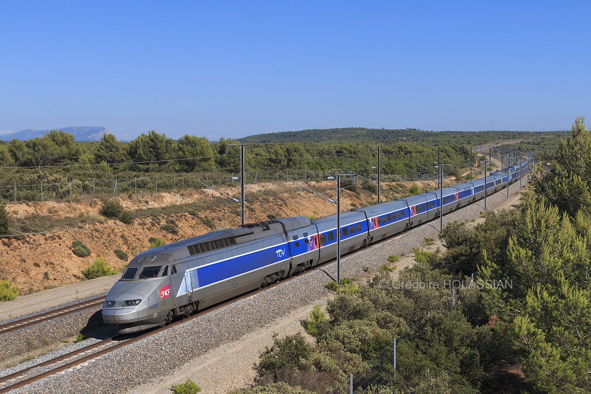 Détails photographie Titre : TGV et Ste-Victoire Description : Sous l’œil attentif de la montagne Sainte-Victoire, célèbre grâce aux peintures de Cézanne, le TGV 9882 assuré en Réseau et Duplex traverse le territoire de la commune de St-Cannat. Date de la prise de vue : mercredi 30 juillet 2014 - 17h37 (heure locale) Date de mise en ligne : samedi 08 novembre 2014 - 11h39 Numéro de la photo : 6784 Dimensions de la photo : 1200x800 Taille du fichier : 558.76 Ko Cette photo appartient aux types de photo suivants : Trains en ligne Cette photo présente les éléments visuels suivants : Conditions météo - Jour Éléments ferroviaires - Caténaire 25 kV Paysage - Montagne/Colline/Falaise |