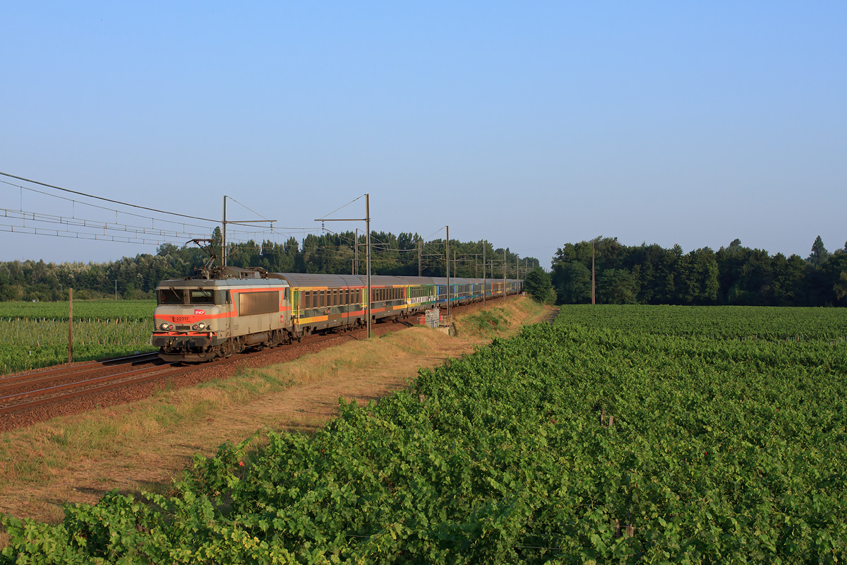 Détails photographie Titre : "Grand Sud" à Cérons Description : Passage à Cérons, en plein cÅ“ur des vignobles pour cet IC 4760 Nice - Bordeaux mené ce jour par la BB 22317. Date de la prise de vue : vendredi 26 juillet 2013 - 20h08 (heure locale) Date de mise en ligne : mardi 25 novembre 2014 - 12h19 Numéro de la photo : 6823 Dimensions de la photo : 1200x800 Taille du fichier : 501.51 Ko Cette photo appartient aux types de photo suivants : Trains en ligne Cette photo présente les éléments visuels suivants : Conditions météo - Jour Éléments ferroviaires - Caténaire 1.5 kV Paysage - Vignes Notes du photographe : Merci à Jéjé pour le transport ! |