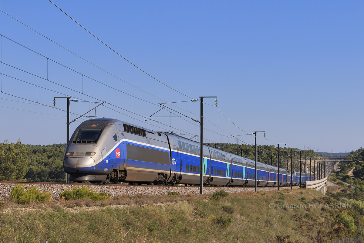 Détails photographie Titre : UM de Duplex au 6128 Description : À hauteur du viaduc de Lambesc, le TGV 6128 fonce vers Paris. Date de la prise de vue : dimanche 27 juillet 2014 - 17h57 (heure locale) Date de mise en ligne : lundi 08 décembre 2014 - 14h19 Numéro de la photo : 6834 Dimensions de la photo : 1200x800 Taille du fichier : 377.44 Ko Cette photo appartient aux types de photo suivants : Trains en ligne Cette photo présente les éléments visuels suivants : Conditions météo - Jour Éléments ferroviaires - Caténaire 25 kV Paysage - Pont/Viaduc |