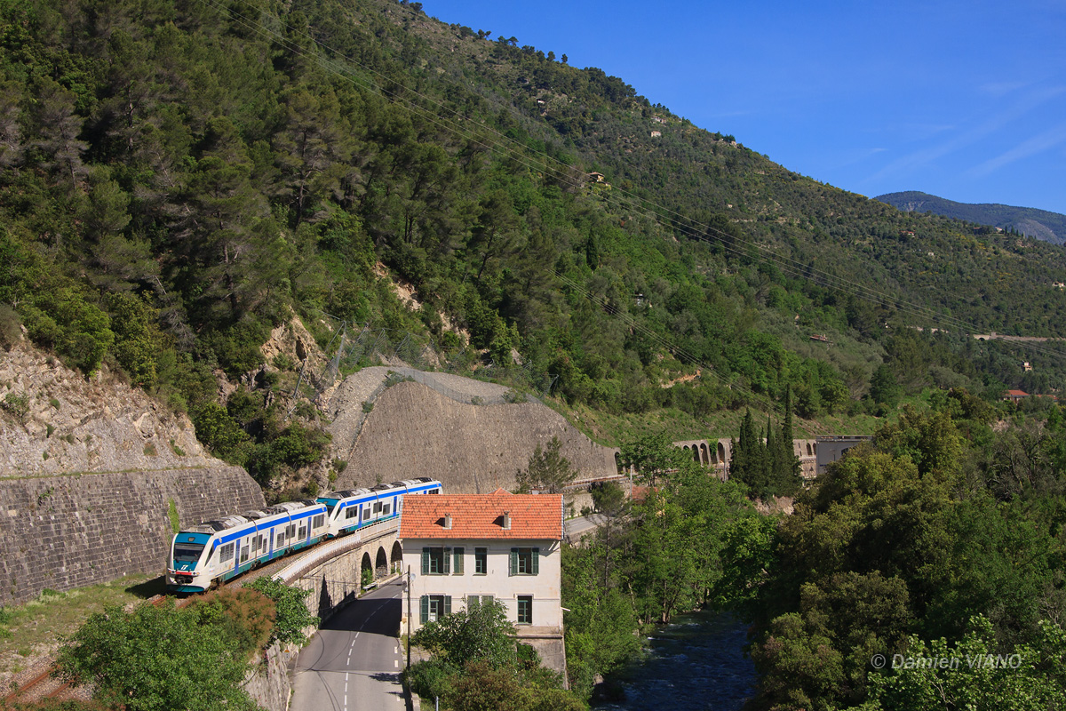 Détails photographie Titre : Couplage de Minuetto en basse Roya Description : Les rames MD 051 et 057 sont vues au franchissement de l'ancienne gare de Piène, au sud de Breil-sur-Roya, assurant l'un des rares trains de la ligne. Date de la prise de vue : jeudi 05 juin 2014 - 09h55 (heure locale) Date de mise en ligne : lundi 15 décembre 2014 - 16h08 Numéro de la photo : 6841 Dimensions de la photo : 1200x800 Taille du fichier : 615.38 Ko Cette photo appartient aux types de photo suivants : Trains en ligne Cette photo présente les éléments visuels suivants : Conditions météo - Jour Paysage - Cours d'eau/Canal Paysage - Montagne/Colline/Falaise Paysage - Village/Maisons |