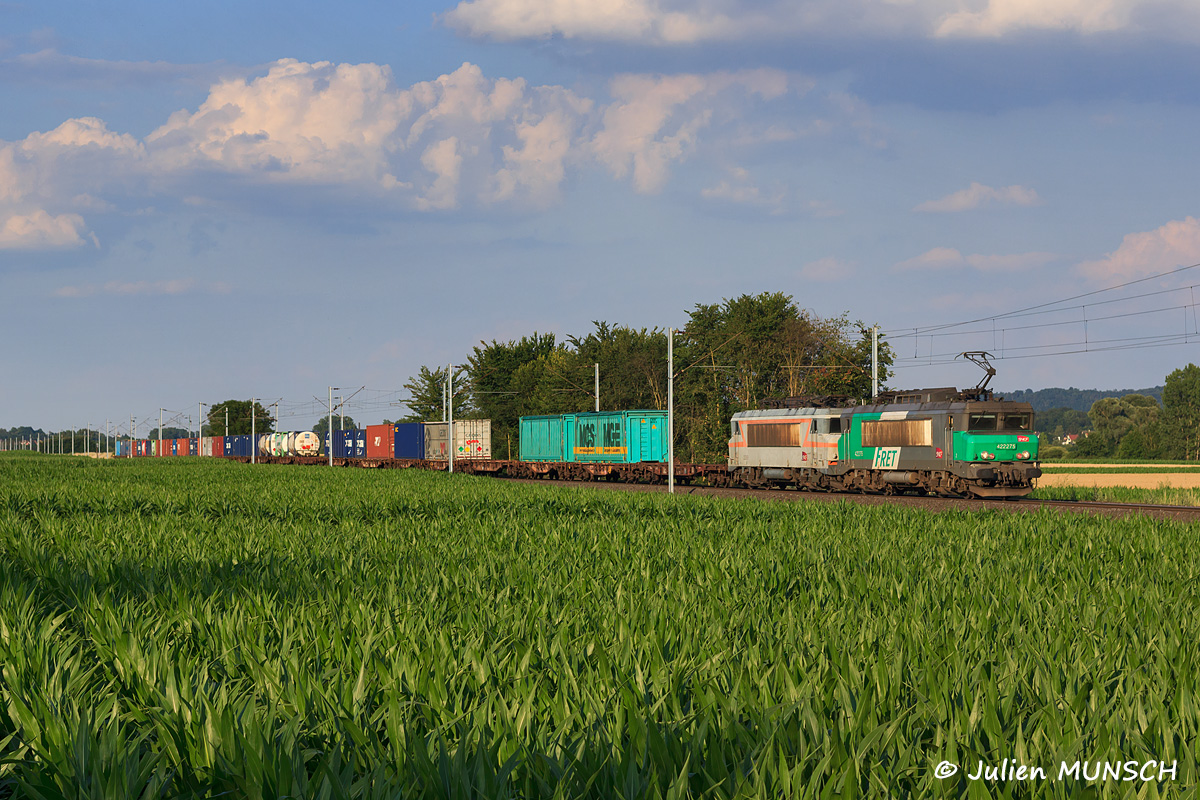 Détails photographie Titre : BB 22275 sur train Naviland ! Description : Passage de la BB 22275 (la dernière BB 22200 en livrée FRET en service) avec la BB 22368 en CV sur le train Strasbourg - Vénissieux . Date de la prise de vue : mercredi 02 juillet 2014 - 19h56 (heure locale) Date de mise en ligne : dimanche 26 juillet 2015 - 14h11 Numéro de la photo : 7047 Dimensions de la photo : 1200x800 Taille du fichier : 514.37 Ko Cette photo appartient aux types de photo suivants : Trains en ligne Cette photo présente les éléments visuels suivants : Conditions météo - Ciel très nuageux Conditions météo - Jour Éléments ferroviaires - Caténaire 25 kV |