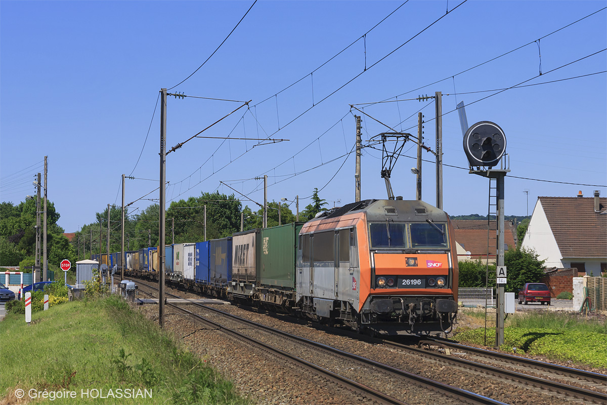 Détails photographie Titre : 26000 dans l'Oise Description : Assurant un Dourges - Valenton, la 26196 est vue ici traversant la commune de Cauffry. Date de la prise de vue : samedi 30 mai 2009 - 15h17 (heure locale) Date de mise en ligne : dimanche 26 juillet 2015 - 14h32 Numéro de la photo : 7052 Dimensions de la photo : 1200x800 Taille du fichier : 441.51 Ko Cette photo appartient aux types de photo suivants : Trains en ligne Cette photo présente les éléments visuels suivants : Conditions météo - Jour Éléments ferroviaires - Caténaire 25 kV Éléments ferroviaires - Passage à niveau Éléments ferroviaires - Signalisation lumineuse |