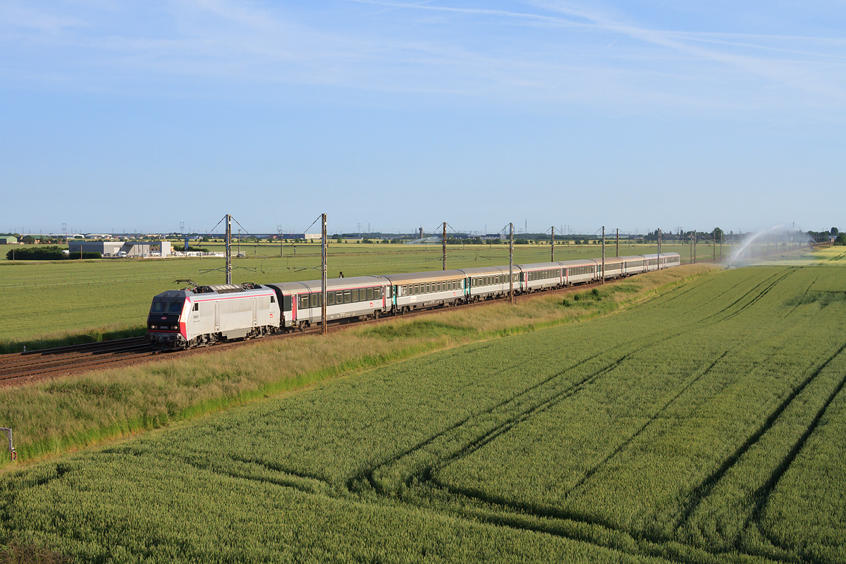 Détails photographie Titre : Paris - Bordeaux par la ligne classique ! Description : Depuis avril 2015, la SNCF a mis en place un IC ECO reliant Paris à Bordeaux, via la ligne classique. Ce dernier est vu dans la Beauce, alors qu'il fonce vers le sud, BB 26043 en tête. Date de la prise de vue : dimanche 07 juin 2015 - 07h53 (heure locale) Date de mise en ligne : jeudi 30 juillet 2015 - 02h01 Numéro de la photo : 7132 Dimensions de la photo : 1200x800 Taille du fichier : 465.84 Ko Cette photo appartient aux types de photo suivants : Trains en ligne Cette photo présente les éléments visuels suivants : Conditions météo - Jour Éléments ferroviaires - Caténaire 1.5 kV |