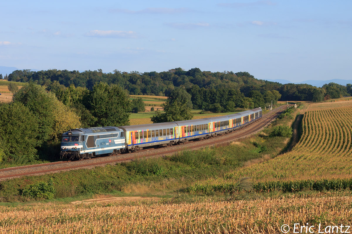 Détails photographie Titre : Mazout bleu et corail sur la L9 Description : La BB 67572 tracte cette composition de 8 voitures corail composant le TER 830908 reliant Krimmeri-Meinau à Sarreguemines. Elle s'apprête à franchir le 3ème PN de la ligne se situant à hauteur de la commune de Minversheim. Date de la prise de vue : mercredi 09 septembre 2015 - 18h04 (heure locale) Date de mise en ligne : dimanche 25 octobre 2015 - 02h40 Numéro de la photo : 7373 Dimensions de la photo : 1200x800 Taille du fichier : 473.63 Ko Cette photo appartient aux types de photo suivants : Trains en ligne Cette photo présente les éléments visuels suivants : Conditions météo - Jour Notes du photographe : Merci à Anthony R. pour la prise en main du logiciel Photoshop ! |