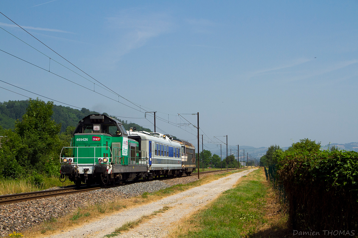 Détails photographie Titre : Mesures entre Rumilly et Bloye Description : Avec une petite avance de 20 minutes sur l'horaire théorique, le train de mesure passe la ligne droite entre Rumilly et Bloye (Evitement) et file sur Aix-les-Bains puis Chambéry. Date de la prise de vue : mardi 07 juillet 2015 - 11h45 (heure locale) Date de mise en ligne : dimanche 25 octobre 2015 - 03h18 Numéro de la photo : 7385 Dimensions de la photo : 1200x800 Taille du fichier : 616.54 Ko Cette photo appartient aux types de photo suivants : Trains en ligne Cette photo présente les éléments visuels suivants : Conditions météo - Jour Éléments ferroviaires - Caténaire 25 kV Notes du photographe : Merci à Pierre B pour le transport. |