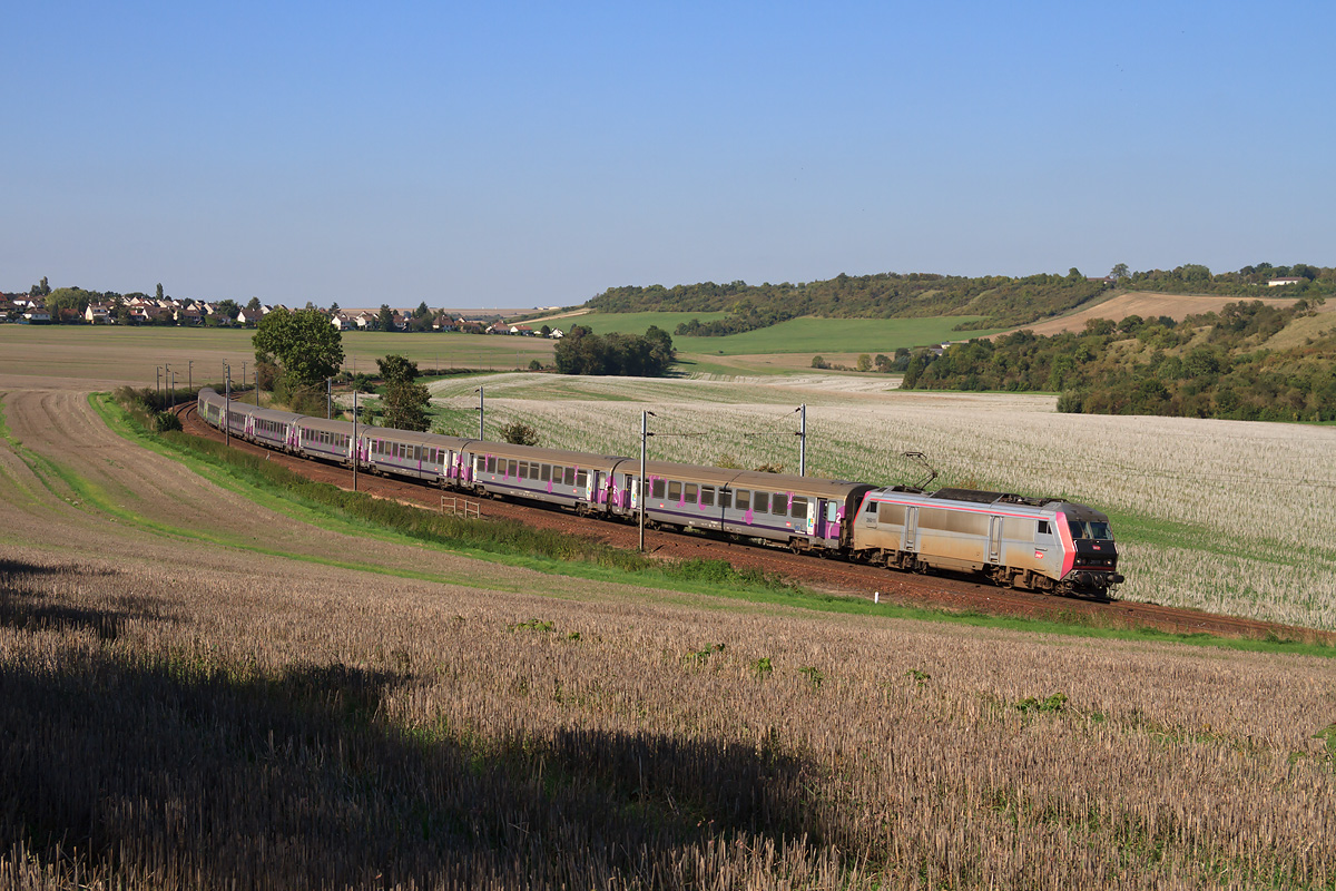 Détails photographie Titre : La Normandie dans les Yvelines ! Description : La BB 26015 achemine une rame Haute-Normandie vers Paris-Austerlitz afin qu'elle soit examinée en fosse. L'ensemble passe la courbe séparent Beynes de Plaisir. Date de la prise de vue : mercredi 30 septembre 2015 - 14h43 (heure locale) Date de mise en ligne : vendredi 13 novembre 2015 - 01h16 Numéro de la photo : 7528 Dimensions de la photo : 1200x800 Taille du fichier : 470.46 Ko Cette photo appartient aux types de photo suivants : Trains en ligne Cette photo présente les éléments visuels suivants : Conditions météo - Jour Éléments ferroviaires - Caténaire 25 kV Trolley |