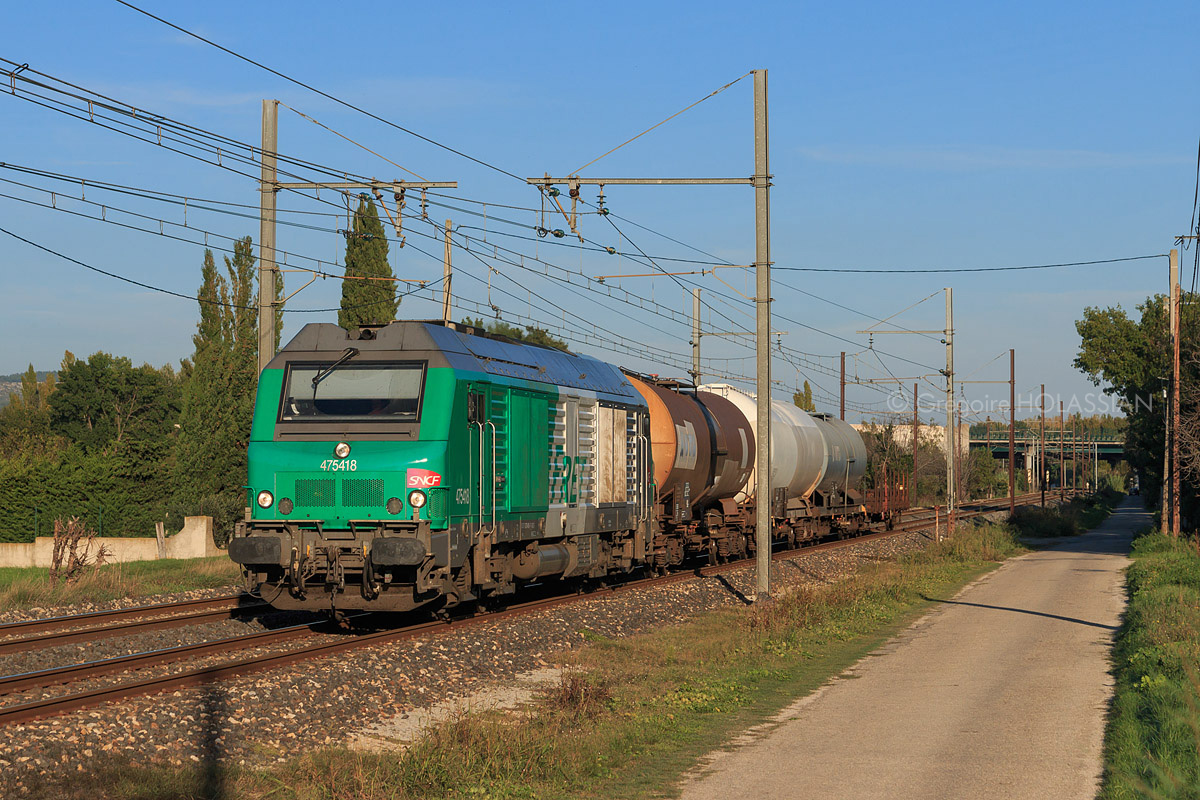 Détails photographie Titre : Prima pour Miramas Description : Assurant la desserte de Sorges, la 75418 est en tête de ce court train à destination de Miramas. Il traverse ici le pays salonnais. Date de la prise de vue : vendredi 17 octobre 2014 - 17h32 (heure locale) Date de mise en ligne : samedi 09 janvier 2016 - 19h44 Numéro de la photo : 7668 Dimensions de la photo : 1200x800 Taille du fichier : 476.17 Ko Cette photo appartient aux types de photo suivants : Trains en ligne Cette photo présente les éléments visuels suivants : Conditions météo - Jour Éléments ferroviaires - Caténaire 1.5 kV |