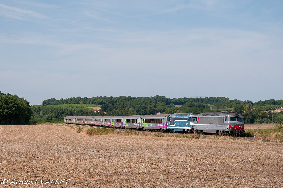 Détails photographie Titre : Intercités Charentais Description : Sous une chaleur écrasante, l'intercité ayant démarré depuis peu de Jonzac traverse à plein gaz le vignoble Charentais et file en direction de Bordeaux. Date de la prise de vue : mercredi 05 août 2015 - 16h31 (heure locale) Date de mise en ligne : samedi 21 mai 2016 - 01h37 Numéro de la photo : 7809 Dimensions de la photo : 1200x800 Taille du fichier : 522.91 Ko Cette photo appartient aux types de photo suivants : Trains en ligne Cette photo présente les éléments visuels suivants : Conditions météo - Jour Paysage - Montagne/Colline/Falaise |