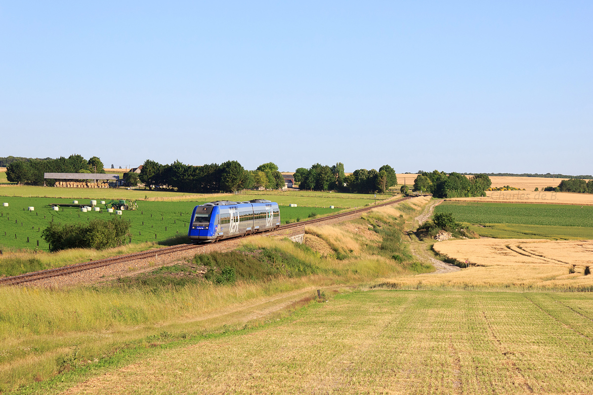 Détails photographie Titre : X 72670 pour Châteaudun Description : Le X 72669/70 passe dans la campagne Vendômoise, en charge du TER 860666 Tours - Châteaudun. À noter que les abords de la voie ont été totalement dégagés récemment, ce qui met en évidence l'antique rail DC, encore présent sur cette section. Date de la prise de vue : samedi 09 juillet 2016 - 19h29 (heure locale) Date de mise en ligne : vendredi 29 juillet 2016 - 23h37 Numéro de la photo : 8148 Dimensions de la photo : 1200x800 Taille du fichier : 609.66 Ko Cette photo appartient aux types de photo suivants : Trains en ligne Cette photo présente les éléments visuels suivants : Conditions météo - Jour Éléments ferroviaires - Pancarte/Tableau Éléments ferroviaires - Rail Double-Champignon Paysage - Bottes de paille/foin |