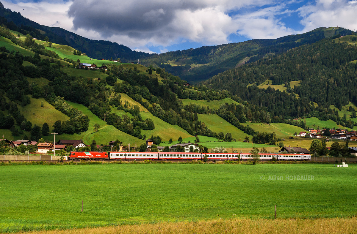 Détails photographie Titre : EuroSprinter sur l'IC 591 à Dorfgastein Description : La Taurus Rh1216 "Italien Fahne" est à la traction de l'InterCity 591 reliant Villach à Salzburg. Le train vient tout juste de desservir Dorfgastein dans le Tirol. Date de la prise de vue : jeudi 07 août 2014 - 16h39 (heure locale) Date de mise en ligne : mardi 13 septembre 2016 - 21h20 Numéro de la photo : 8413 Dimensions de la photo : 1200x788 Taille du fichier : 542.6 Ko Cette photo appartient aux types de photo suivants : Trains en ligne Cette photo présente les éléments visuels suivants : Conditions météo - Ciel très nuageux Conditions météo - Jour Paysage - Montagne/Colline/Falaise Paysage - Village/Maisons |