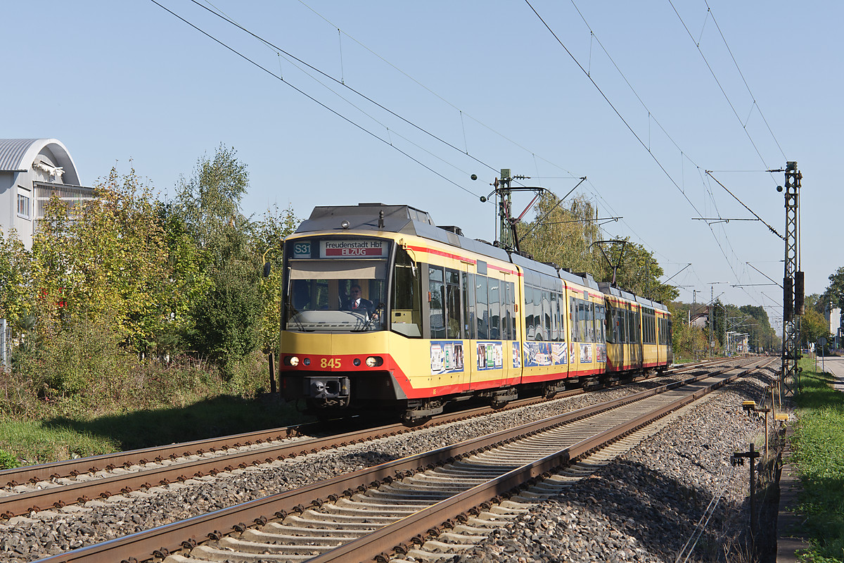 Détails photographie Titre : Tram-train de Karlsruhe à Forchheim Description : A Forchheim, au sud de Karlsruhe, sur la grande ligne vers Baden-Baden, Fribourg et Bâle, le sercice local est assuré par des tram-trains, qui circulent entre deux ICE, TGV ou frets. Ce tram-train est une mission de la ligne de S-Bahn S31, et relie Karlsruhe centre-ville à Freudenstadt, à 700 m d'altitude en Forêt Noire, en 1h25. Comme le laisse supposer l'indication "Eilzug", ce tram-train est express et ne dessert pas toutes les gares pour 83 km. Date de la prise de vue : vendredi 14 octobre 2011 - 12h16 (heure locale) Date de mise en ligne : samedi 05 mai 2012 - 10h19 Numéro de la photo : 4558 Dimensions de la photo : 1200x800 Taille du fichier : 509.83 Ko Cette photo appartient aux types de photo suivants : Trains en ligne Cette photo présente les éléments visuels suivants : Conditions météo - Jour |